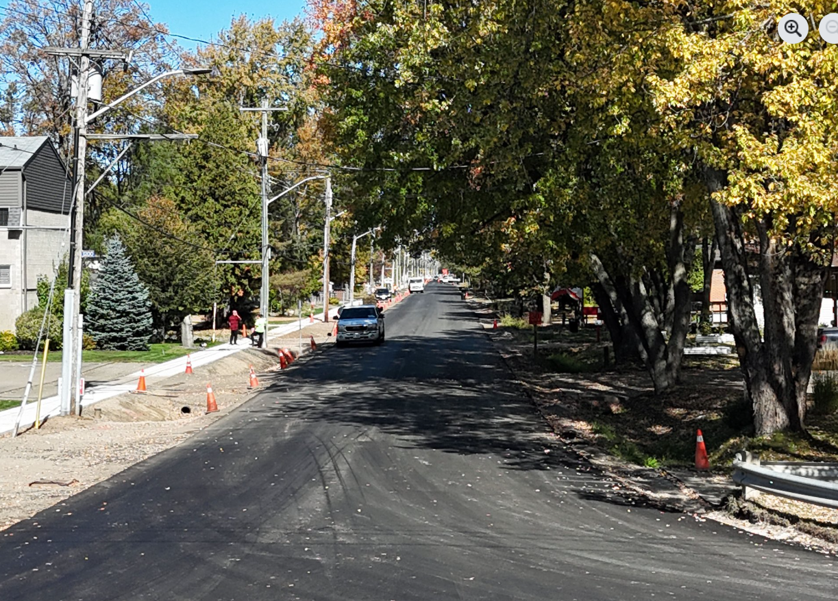 New sidewalks and paving are complete, with sodding and driveway restorations now underway.