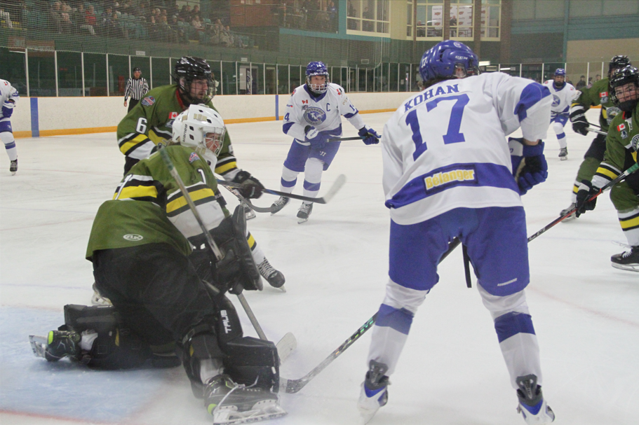 A fourth on the night saw defenceman Jackson Marnell whip one to the target from the left point which sailed through a crowd and eluded a screened Vahramian for his first NOJHL goal.